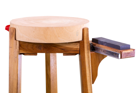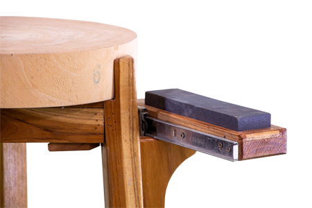 ผลิตจากวัสดุคุณภาพ ออกแบบสวยงาม วางเขียงไม้ทรงกลม มีลิ้นชักใส่หินลับมีด